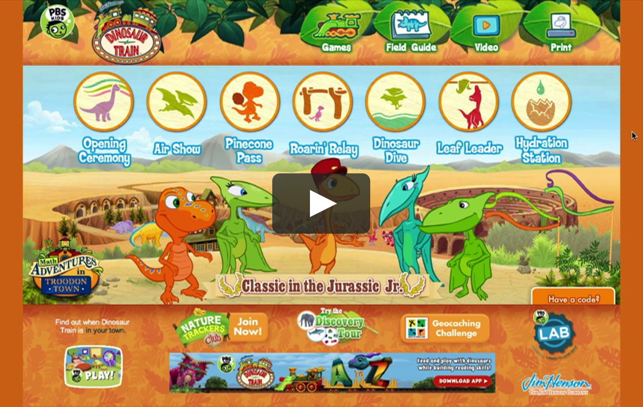 The Olympics-themed games suite for Classic in the Jurassic Jr. FREE Dinosaur Train Classic in the Jurassic Jr. Rather than developing a suite of independent games FableVision created a humorous narrative that strung the seven games.